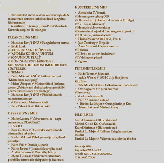 Tartus toimus raamatuga seotud esitlusperformance Eclectica 06 raames 6.9.06 Tartu vanas anatoomikumis.